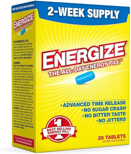 Amazon Com Energize Caffeine Pills Fast Acting Energy Pill Healthy Focus Brain Supplement Improved Performance Alertness And Clarity All Day Energy No Jitters No Crash 28 Time Released Tablets Health Household